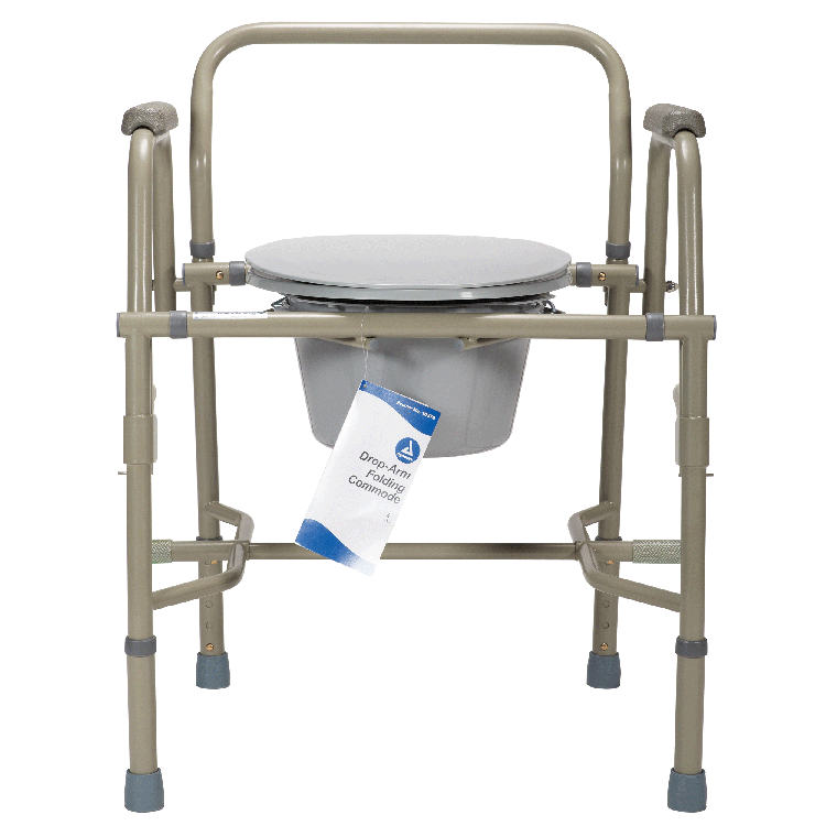 The Dynarex Drop-Arm Bedside Commode is a versatile, space saving commode option. It can be configured in three functions and can also fold flat for storage. Drop arms allow for lateral patient transfers to and from the commode. Tool-free installation and height adjustment provide convenience for caregivers. Ideal for a wide variety of individuals, including children and the elderly.