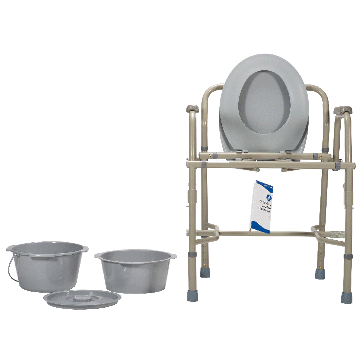 • Includes commode bucket with handle, cover, and splash shield