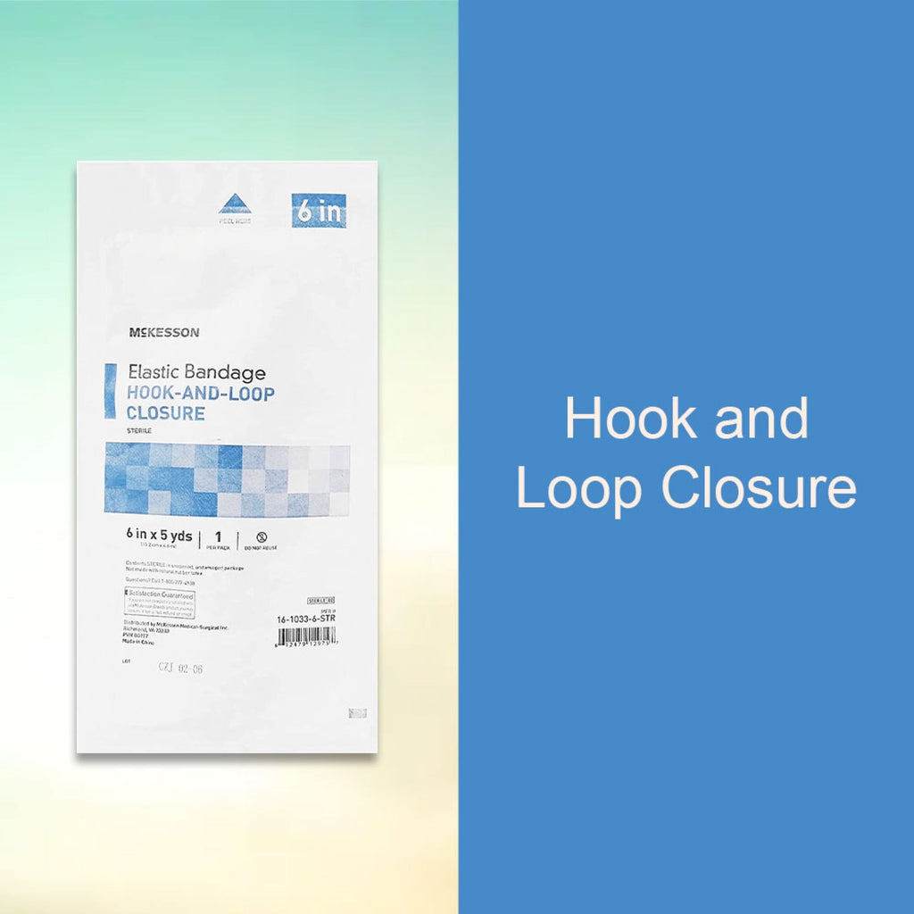 • The hook-and-loop closure on this 6 inch x 5 yard McKesson bandage keeps it securely in place without the need for metal clips.