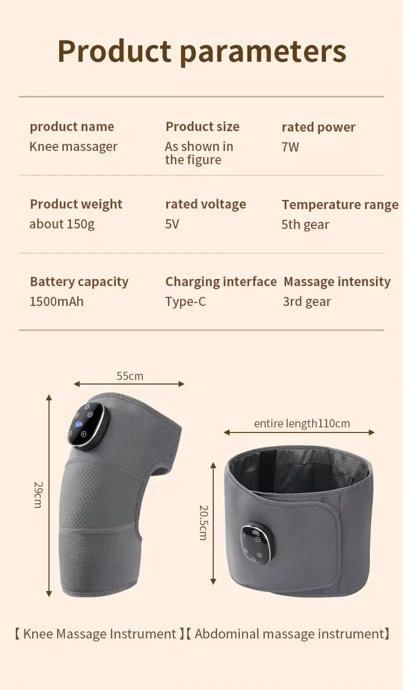 • Electric Knee Massager :This sophisticated electric knee massager provides deep tissue relief, helping to alleviate pain and discomfort in the joints.
