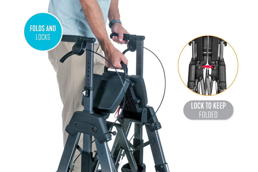 Once folded, lock the rollator into place to prevent unraveling when lifting or transporting.