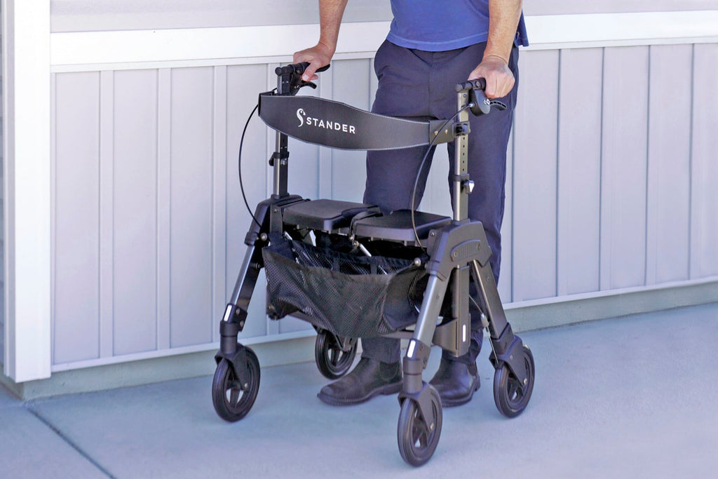 The Wonder Rollator HD folds two to three times smaller than the average bariatric rollator. The heavy duty walker collapses into a compact 16″ x 10″ footprint and stands on its own when not being used.