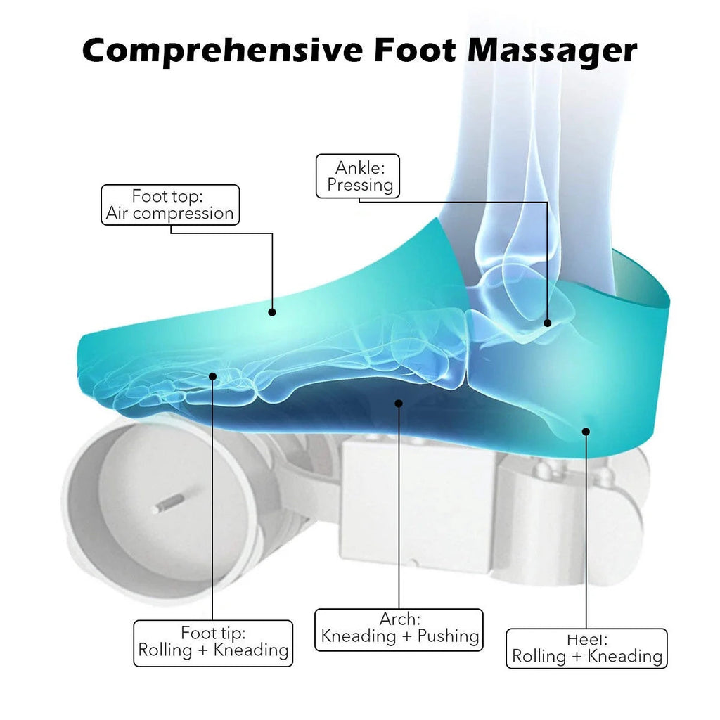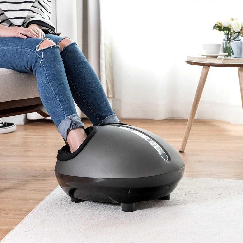 Enjoy all the benefits advantages of a professional foot massage at home with the Multi-function foot massager. You can now enjoy traditional massage in the comfort of your home or office to relax your mind, body, feet, and relieve stress. The lightweight foot massager is portable and easy to carry. Because it is small and lightweight, it can be taken anywhere and easily stored under the bed or in a closet. Our foot massager features 3 massage modes- air compression, rolling and kneading, powerful rollers under the feet mimic the feeling of an expert masseuse, rubbing and kneading in all the right places with a unique clamping motion in the heels. Plus, there are three massage intensities for you to choose. Heat function improve blood circulation, relieve muscle tension, tired feet, neuropathy, chronic nerve pain and plantar fasciitis. Besides, the functions of timing and automatic shutdown guarantee the safety of use. Having a foot massager at home is a fast and convenient way to save money and get an instant massage with a push of the button. It helps relax the body, relives stress, improves blood circulation, and promotes better sleep. Restore the energy your body needs. So Don't hesitant to buy it now!