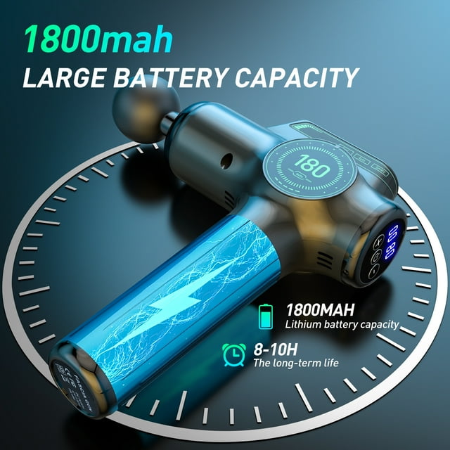 •  [Smart LED Screen & Easy to Use] No complicated buttons to deal with. The massage gun is equipped with an intelligent LED screen design and battery display design, allowing you to easily adjust the speed level by the buttons on the screen and view the remaining battery.