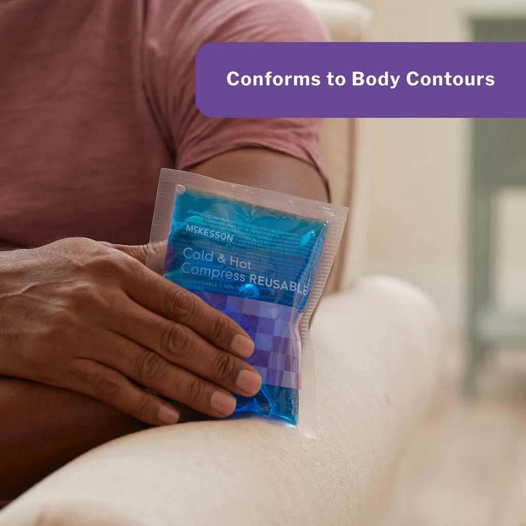 Treat pain resulting from pulled muscles, stiff joints, cramps or inflammation efficiently with this McKesson Cold and Hot Pack. The 6-3/4 x 10-1/2 inch gel pack is microwaveable to provide heat therapy, which improves circulation to soothe and enhance muscle flexibility. The McKesson cold and hot compress is also freezable to provide cold treatment by decreasing blood flow to reduce inflammation. The non-toxic hot and cold gel pack conforms easily and remains flexible even after it's frozen to ensure it relieves pain efficiently around body contours. It's designed for repetitive use and is easily cleaned with soap and water. The large heat pack doesn't contain any natural rubber latex, suiting individuals with related allergies. - The 6-3/4 x 10-1/2 inch McKesson cold and hot compress provides hot and cold therapy to relieve muscle cramps and inflammation. You can freeze or microwave the large gel pack to the preferred temperature. The gel pack conforms to contours around joints and other areas to provide adequate pain treatment. The pack is a gel consistency, even when it's frozen, to ensure it stays flexible. It is suitable for repeated use. Each pack has one reusable hot and cold compress, while each case contains 150 packs.