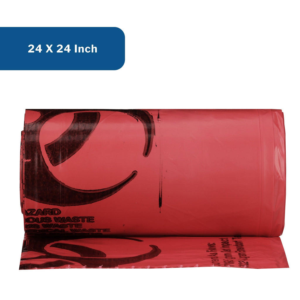 Quantity Info- BAG, BIOHAZ SL HDPE RED STAR 24X24 1MIL (500/CS)