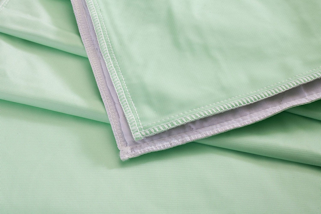 Answer: A protective bed pad that shields mattresses, chairs, or furniture from leaks and spills.