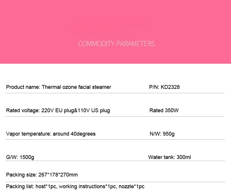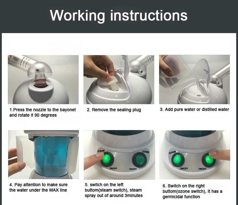 1, Ozon sprayer: Skin beauty care instruments must be used for any type of skin, it can make the pores open and conducive to remove dirt and foreign matter inside the pores of the skin surface, soften cuticles dead cells on the skin surface disinfection, increased skin temperature, promote blood circulation.