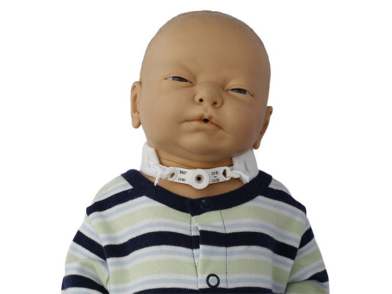 • Built-in cushion material protects the neck from direct contact with plastic tracheostomy flanges