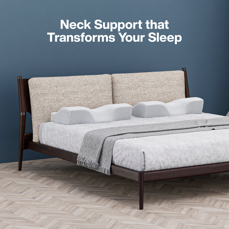 • PERFECT NECK SUPPORT: The cervical pillow aligns the head, neck, and upper lumbar region and relieves pressure on the spine. The contoured design of the pillow with neck support curve promotes a healthy sleeping posture and wakes you up pain free every morning.