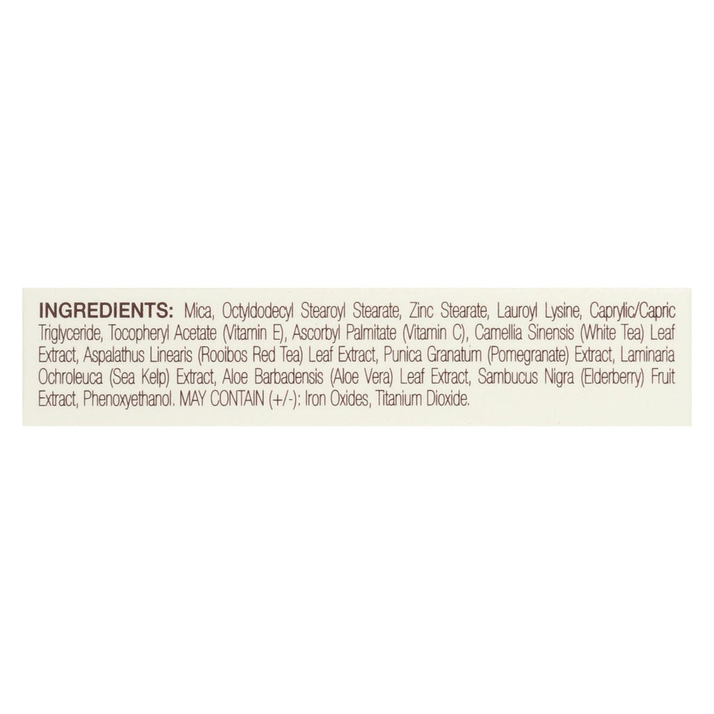 ingredients : may contain;+/-;: iron oxides;titanium dioxide;mica;octyldodecyl stearoyl stearate;zinc stearate;lauroyl lysine;caprylic/capric triglyceride;tocopheryl acetate;ascorbyl palmitate;camellia sinensis;white tea;leaf extract;aspalathus linearis;rooibos;punica granatum;pomegranate;extract;laminaria ochroleuca;sea kelp;aloe barbadensis;aloe vera;carthamus tinctorious;safflower;seed oil;sambucus nigra;elderberry;flower extract;phenoxyethanol
