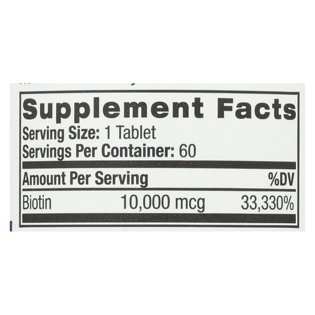 Natrol biotin description: maximum strength promotes healthy hair and strong nails supports cellular energy production biotin is an important b-vitamin that provides dietary support for healthy hair and nails as well as energy production. By supporting the matrix of hair and nails, biotin promotes shiny, lustrous hair and strong, resilient nails. Free of yeast, but contains wheat, corn, milk, egg, soy, glutens, artificial colors and flavors, added sugar, starch and preservatives. Disclaimer these statements have not been evaluated by the fda. These products are not intended to diagnose, treat, cure, or prevent any disease.