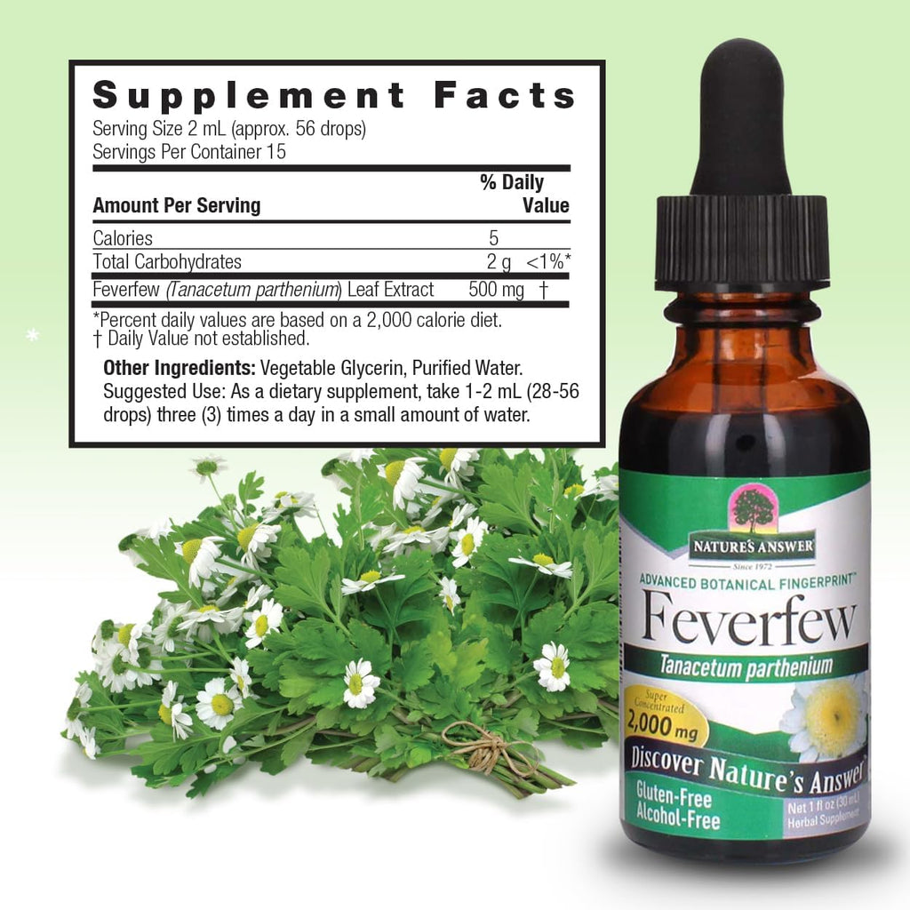 Answer: Nature's Answer - Feverfew Leaf Alcohol Free - 1 Fl Oz is a herbal supplement intended for general wellness as described in the product details.