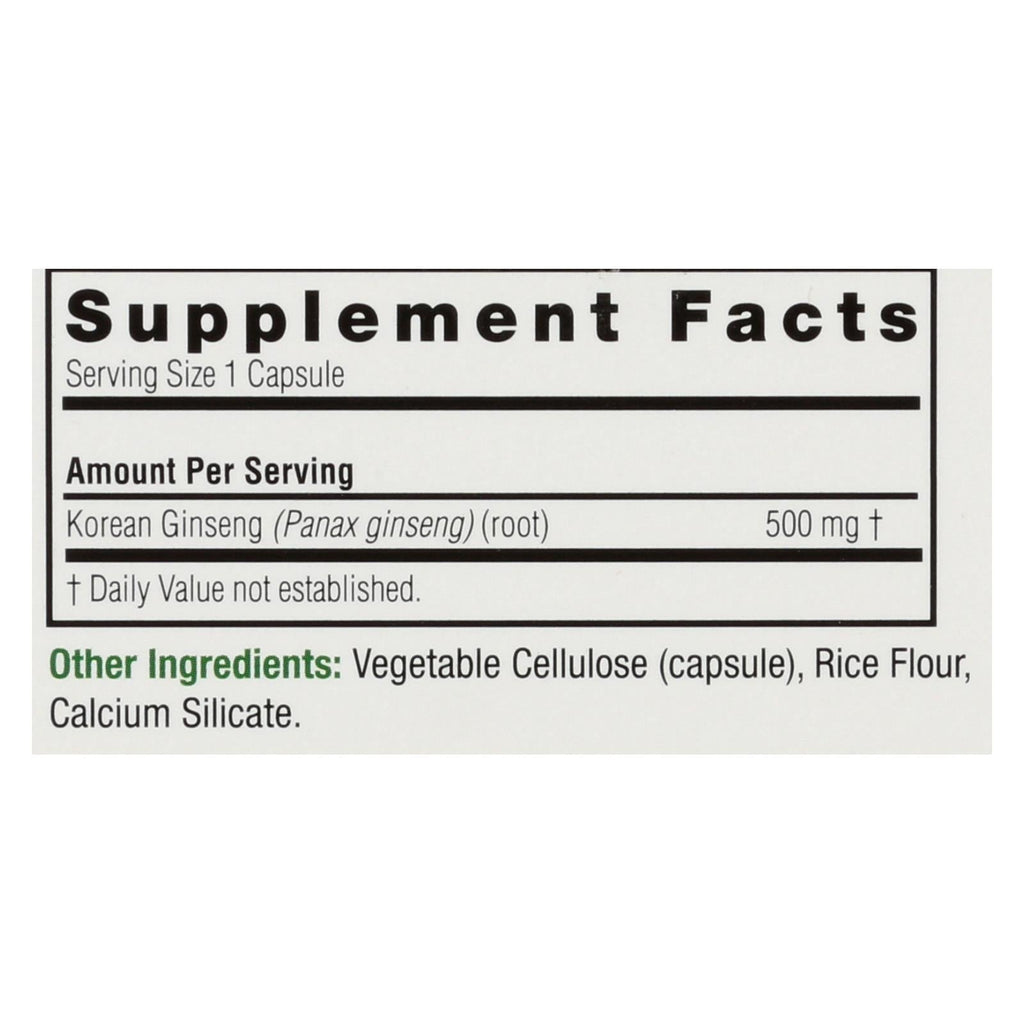 Nature's answer korean ginseng dietary supplement contains 500 mg. Of panax ginseng root to promote calm and overall well being. Each 50 count bottle is holistically balanced and goes through 100 checkpoints for the highest quality. The formula is not tested on animals and is cruelty free for those concerned about animal welfare. These capsules are also certified parve and and free of gluten.