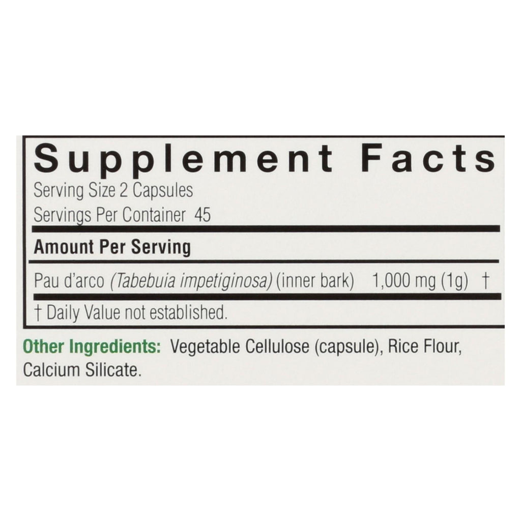 Nature's answer pau d'arco full spectrum herb dietary supplement uses the inner bark of pau d'arco to help boost your body's immune system and maintain your intestinal flora. Each 90 capsule bottle is vegan and gluten-free to protect sensitive digestive systems. For best results, take two capsules per day with water or food.