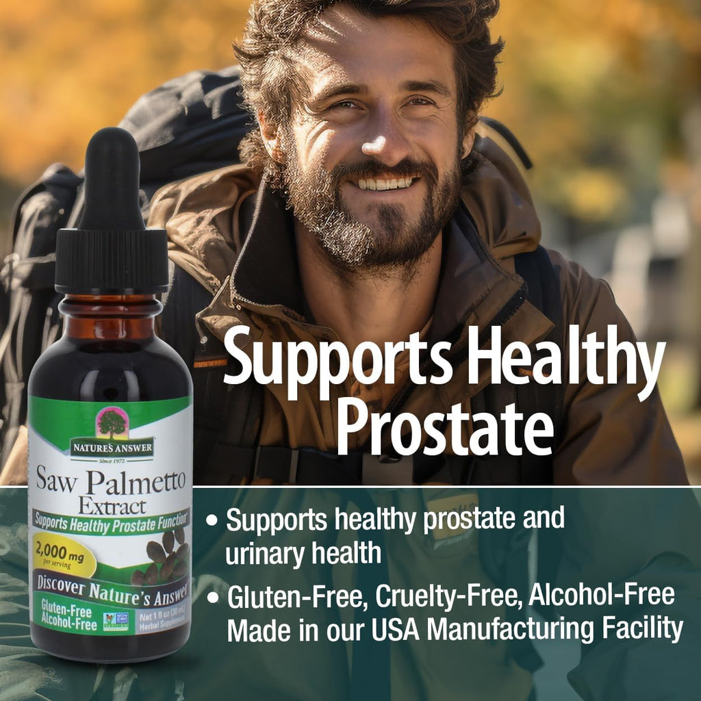 Answer: Nature's answer saw palmetto herbal supplement is a natural biochelated herbal product extracted from saw palmetto berries. Intended to support urinary and prostate health, this supplement is gluten; free and alcohol free. We package this super; for women as well as men. For herbal prostate support, consider Saw Palmetto Herbal Extract from Nature’s Answer; These statements have not been evaluated by the Food and Drug Administration. This product is not intended to diagnose, treat, cure or prevent any disease. Why Nature’s Answer? All plants have unique chemical characteristics, markers, and natural patterns that can be used to identify them (just like human fingerprints). Our in; controlled extraction techniques, we capture the holistic balance of each herb and the value is passed on to you, our customer. From plant to shelf, you can be assured that we know exactly what’s in the product in your hand, and we guarantee it is authentic, safe, effective, holistically balanced, and of course … Nature’s Answer. Â