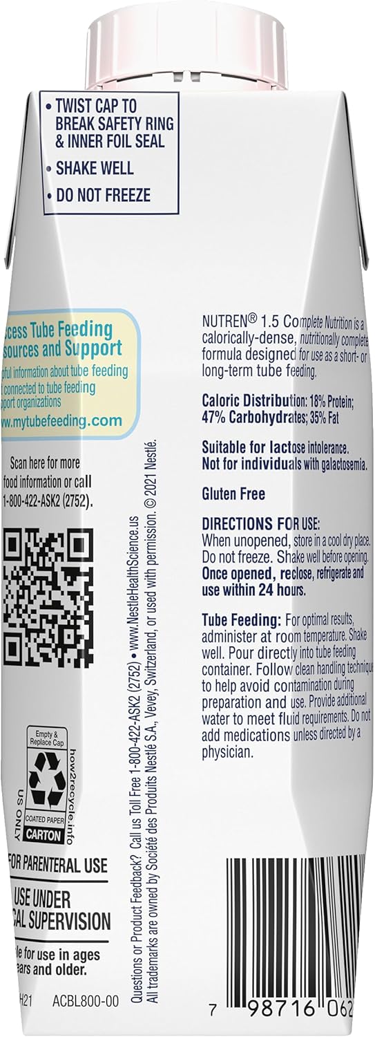 Answer: Tube Feeding Formula Nutren 1.5 Unflavored Liquid 250 mL Carton,Packaging Type- Each is an enteral nutrition formula for tube feeding as described in the product details.