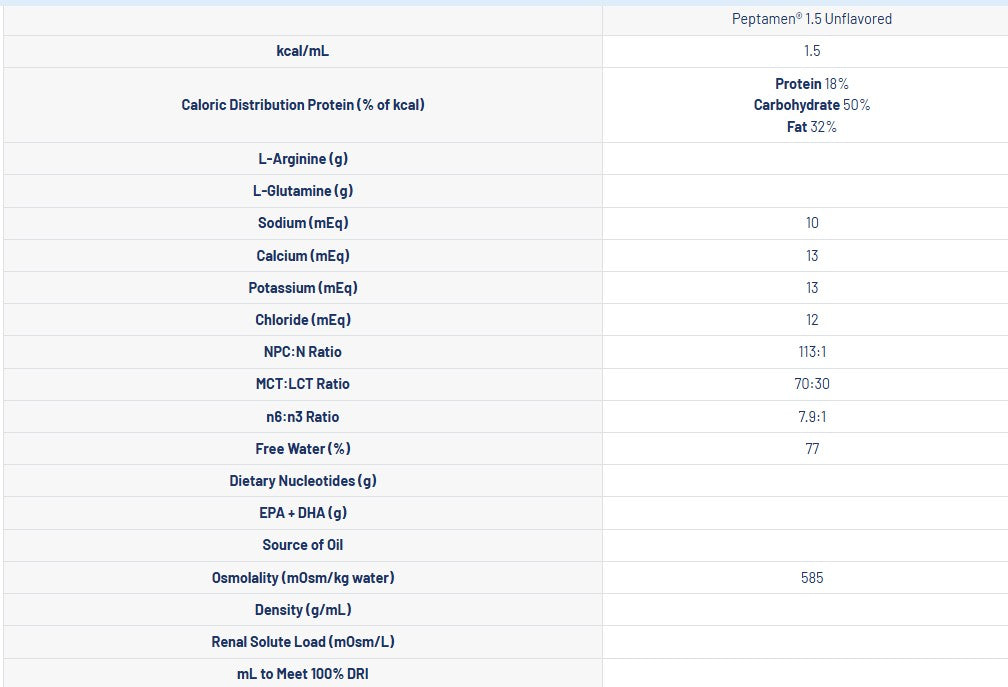 Answer: Tube Feeding Formula Peptamen 1.5 Unflavored Liquid 1000 mL Ready to Hang Prefilled Container,Packaging Type- Each is an enteral nutrition formula for tube feeding as described in the product details.