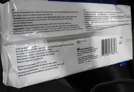 • Extra-large cloths, 8.6 x 11.8 in. (22 x 30 cm), are ideal for perineal clean-up