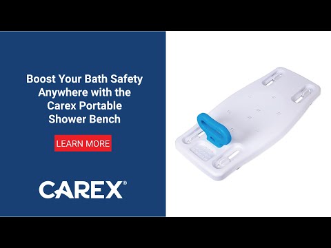Stay comfortable, agile, and safe in any bathtub with the Carex Portable Shower Bench. The Portable Bath and Shower Bench has a contoured seating area and adjusts easily to fit standard bathtubs ranging from 19 inches to 28 inches wide. This bench is convenient, comfortable, and portable for easy storage and travel. It features a built-in soap dish with drainage holes and has rubber stops to protect the bathtub from scratches.