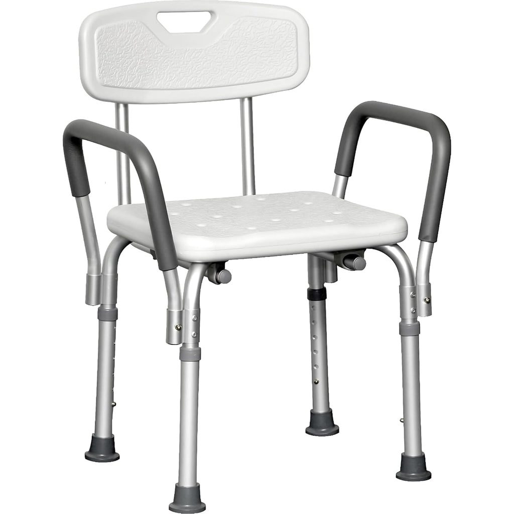 • ProBasics Shower Chair with Arms provides safe and comfortable bathing, offers a contoured and textured shower seat that supports up to 300 lbs, making it an ideal shower chair for elderly and disabled users who need extra stability