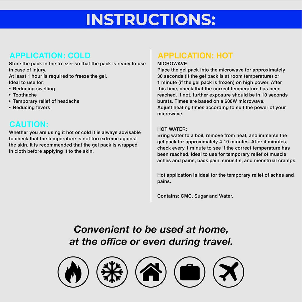 Answer: For cold use, chill it as directed on the label and apply with a cloth barrier. For heat, follow the heating instructions and test the temperature before placing it on your skin.