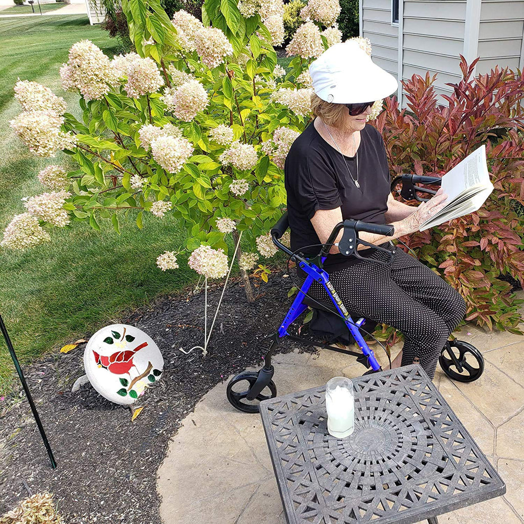 • ROLLING 4 WHEEL WALKER: Use the padded seat to hold bags or your purse while you are walking & take a seat when you need a break. This medical walker supports up to 300 lbs & the seat can be adjusted to 18 - 22 inches high so you can adjust it to fit your height.