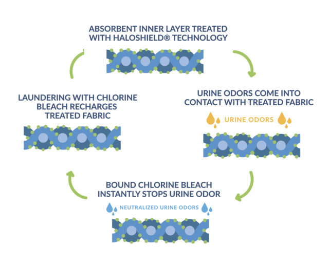 Salk’s odor control underpad is a fresh solution for incontinence odor.  Our patented odor-eliminating technology kills 99.9% of odor-causing germs and bacteria on contact and can be recharged by using a small amount of Chlorine Bleach when laundering.  Our reusable odor control underpad eliminates the odor, embarrassment and hassle that accompany incontinence.  A major development in antimicrobial protection, these underpads are ideal for adding an extra layer of protection to bedding and chairs.  This underpad is available in 5 sizes.