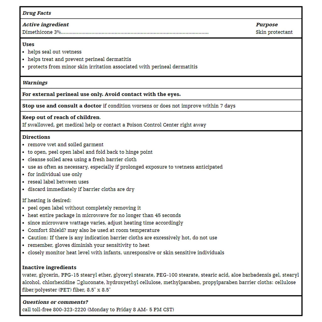 • Sage Comfort Shield Barrier Cream Cloths with dimethicone can help you provide consistent patient care by applying an effective barrier every time. Each cloth delivers all-in-one skin cleansing, moisturizing, deodorizing, treatment and barrier protection.