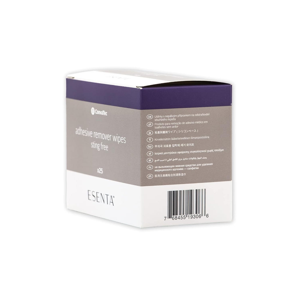 • EASY TO USE 1. Tear sachet to open and unfold wipe 2. Rub the wipe over adhesive residues to remove 3. Once dried ESENTA Adhesive Remover will not affect adhesion of further dressings or appliances