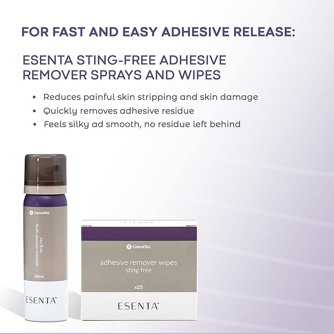 • 100% SILICONE-BASED leaves skin feeling silky and smooth with no residue left behind whether you use the ESENTA Sting-Free Adhesive Remover Spray or the ESENTA Sting-Free Adhesive Remover Wipes