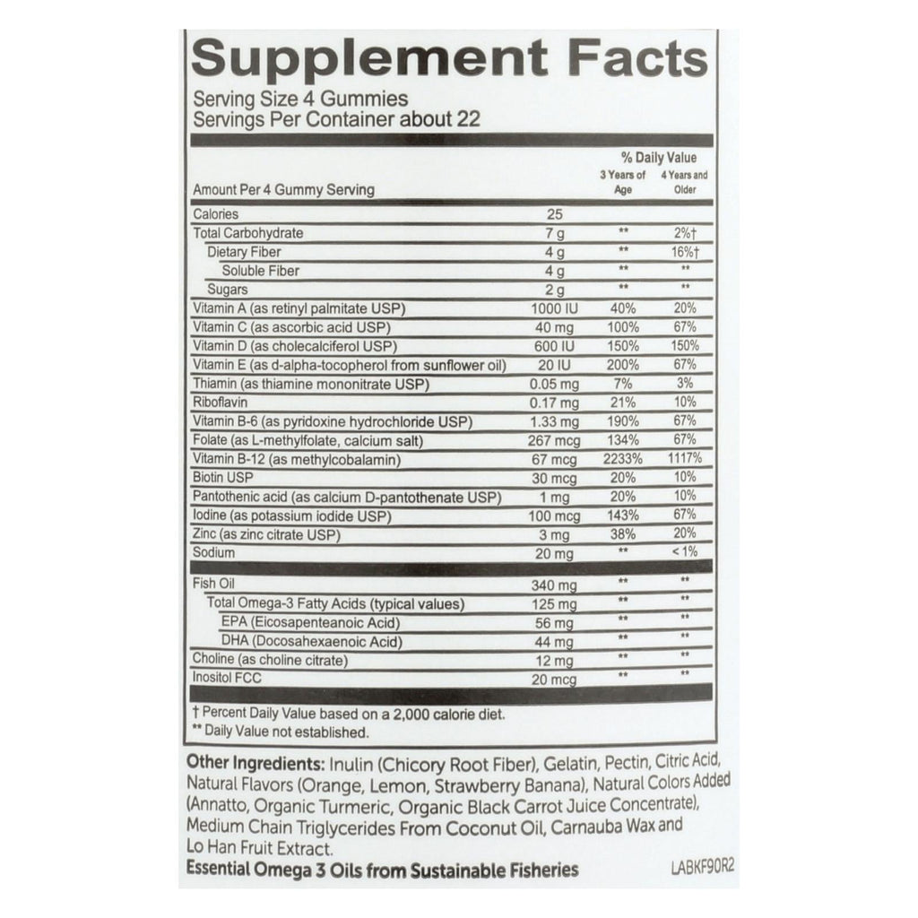 Smartypants strawberry banana, lemon and orange vitamins kids complete and fiber are free of synthetic colors and other artificial additives. Our gummies provide vitamins, minerals and omega-3 fatty acids, helping to ensure your child's diet is healthy and complete. We use non-gmo ingredients. This bottle contains 90 gummies.