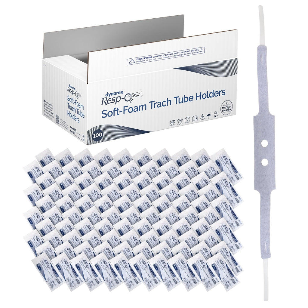 Dynarex Resp-O2 Soft-Foam Trach Tube Holders are designed to stabilize and securely hold tracheostomy tubes in place to help ensure uninterrupted airflow to trach patients. The Trach Tube Holder is constructed from soft, fabric-covered foam that is both strong and lightweight for optimal durability and patient comfort. The Trach Tube Holder features a convenient, one-piece design that is easy to adjust with hook-and-loop straps.