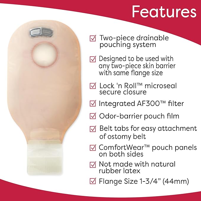 • A simple snap-off, snap on design allows users to change the pouch quickly to match activities without removing the skin barrier from the skin