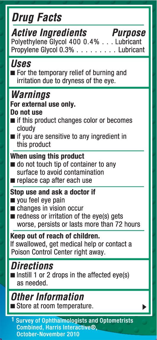 • Active ingredients: 0.4% polyethylene glycol 400; 0.3% propylene glycol