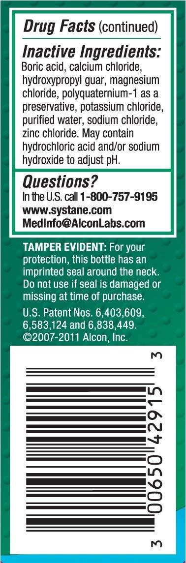 Boric acid, calcium chloride, hydroxypropyl guar, magnesium chloride, polyquaternium-1 as a preservative, potassium chloride, purified water, sodium chloride, zinc chloride. May contain hydrochloric acid and/or sodium hydroxide to adjust pH.