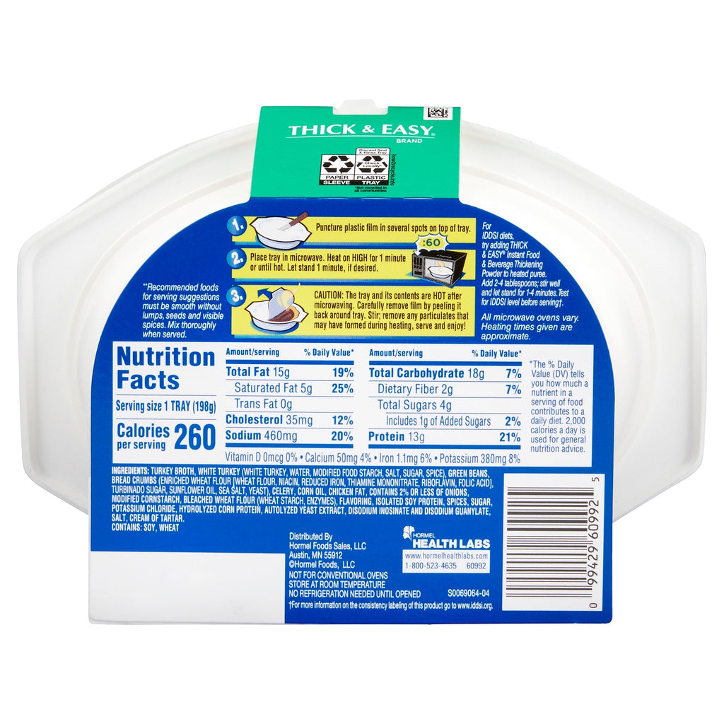Answer: Thickened Food Thick & Easy Purees 7 oz. Tray Turkey with Stuffing / Green Beans Flavor Puree IDDSI Level 2 Mildly Thick, is a high-quality thickener designed to modify the consistency of food and beverages.