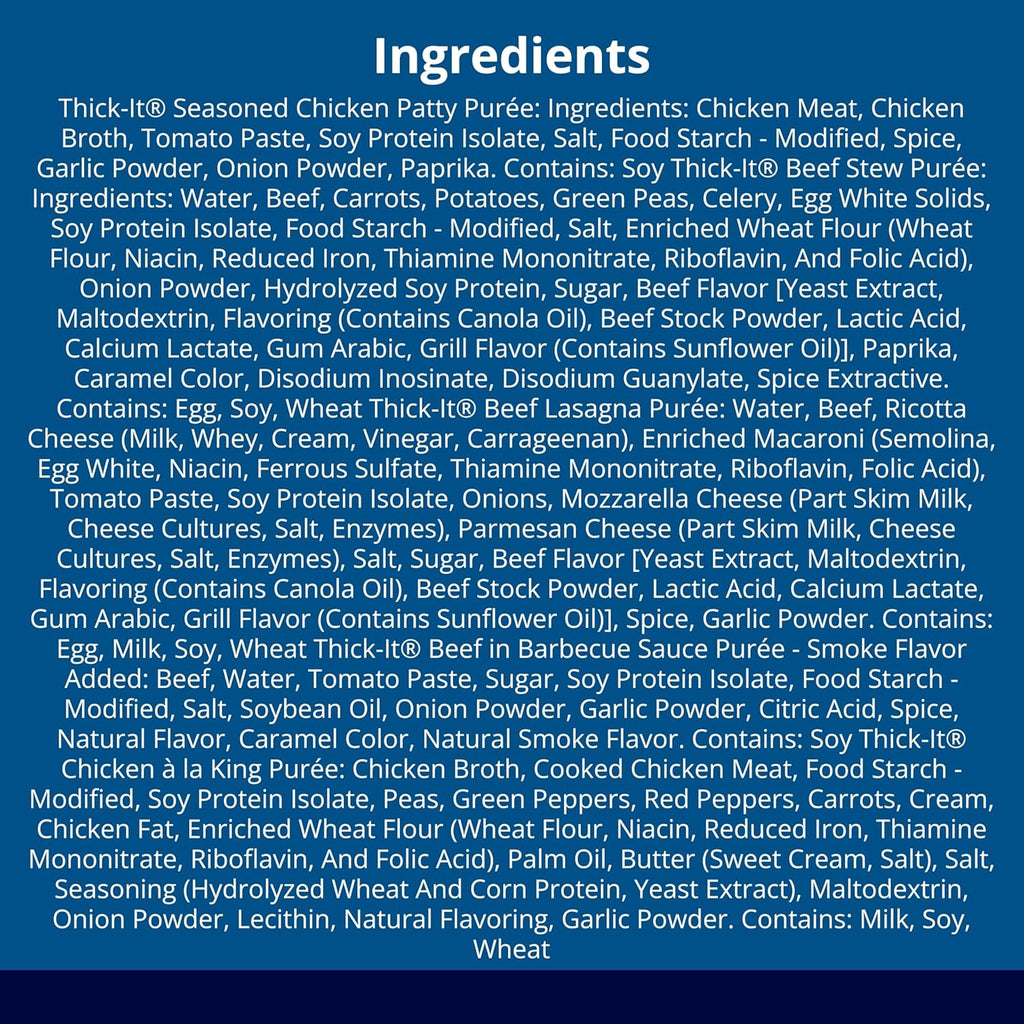 - Shelf-stable Thick-It purées deliver great taste, reliable consistency and proper nutrition with every serving.