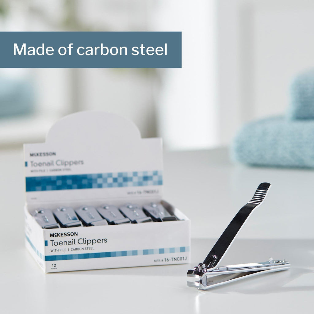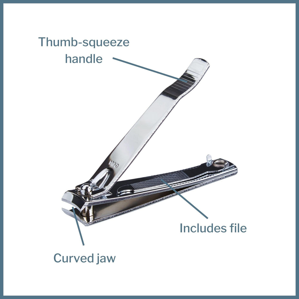 • These carbon steel nail clippers have a thumb-squeeze handle to make it easy to precisely and properly trim nails