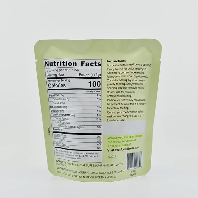 Answer: Tube Feeding Formula Real Food Blends Mini Prunes / Pears / Pumpkin Flavor Liquid 4 oz. Pouch is an enteral nutrition formula for tube feeding as described in the product details.
