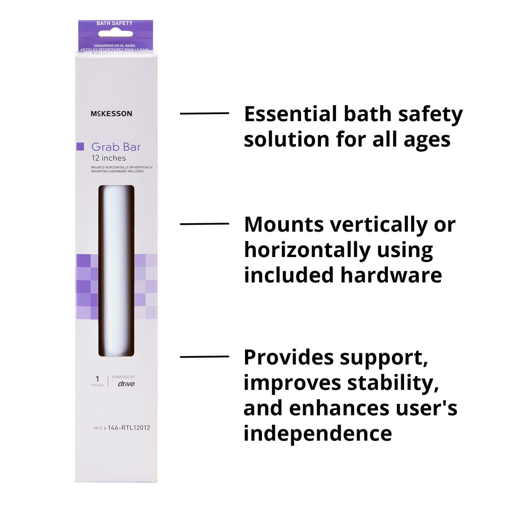 • This 12-inch grab bar includes mounting hardware for simple installation.