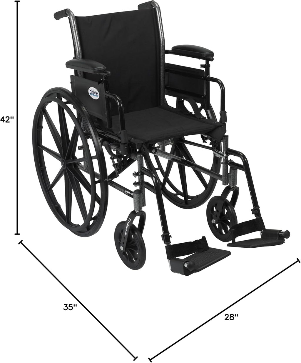 • Swing-away Footrests or Elevating Legrests: Choose between two footrest options for comfort, both with tool-free adjustable front riggings.