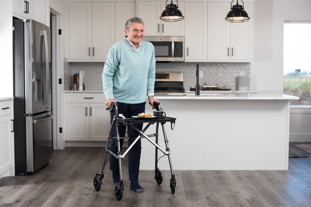The Wonder Indoor Rollator is a compact rolling walker designed specifically for safe and convenient indoor mobility. It is built to help users transport everyday items such as meals, beverages, books, or personal essentials from room to room without needing to carry them by hand. This makes it particularly useful for individuals who require mobility support while also needing a practical solution for moving items around the house, helping promote greater independence in daily living.