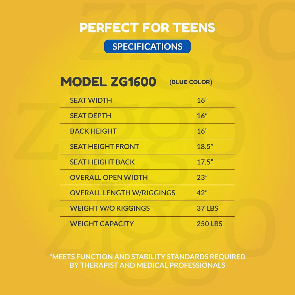Question: What is the weight capacity of Ziggo Lightweight Wheelchair with flip-back, padded desk-length armrests, 250 lbs Weight Capacity ,ZG1600?