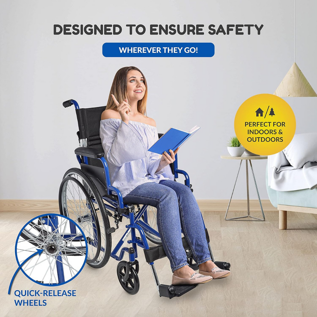 SMART FEATURES FOR EVERY-DAY CONVENIENCE: The Ziggo wheelchair comes packed with quality-of-life enhancing features: A secure pelvic belt buckle and flip-back, padded desk-length armrests. Our height adjustable footrests sport a swing- away design for added practicality along with calf straps for additional support and comfort.
